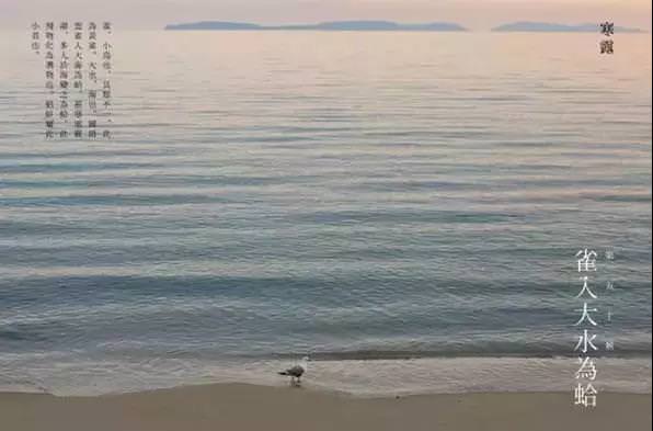 二候雀入大水為蛤。“蓋寒風嚴肅,多入于海,變之為蛤”,天氣寒涼,雀鳥都躲藏起來,古人便以為海邊的蛤蜊都是由消失的雀鳥變化而來。鳥雀入大?;癁楦蝌郏w物化為潛物,這是古人感知寒風嚴肅的一種說法。