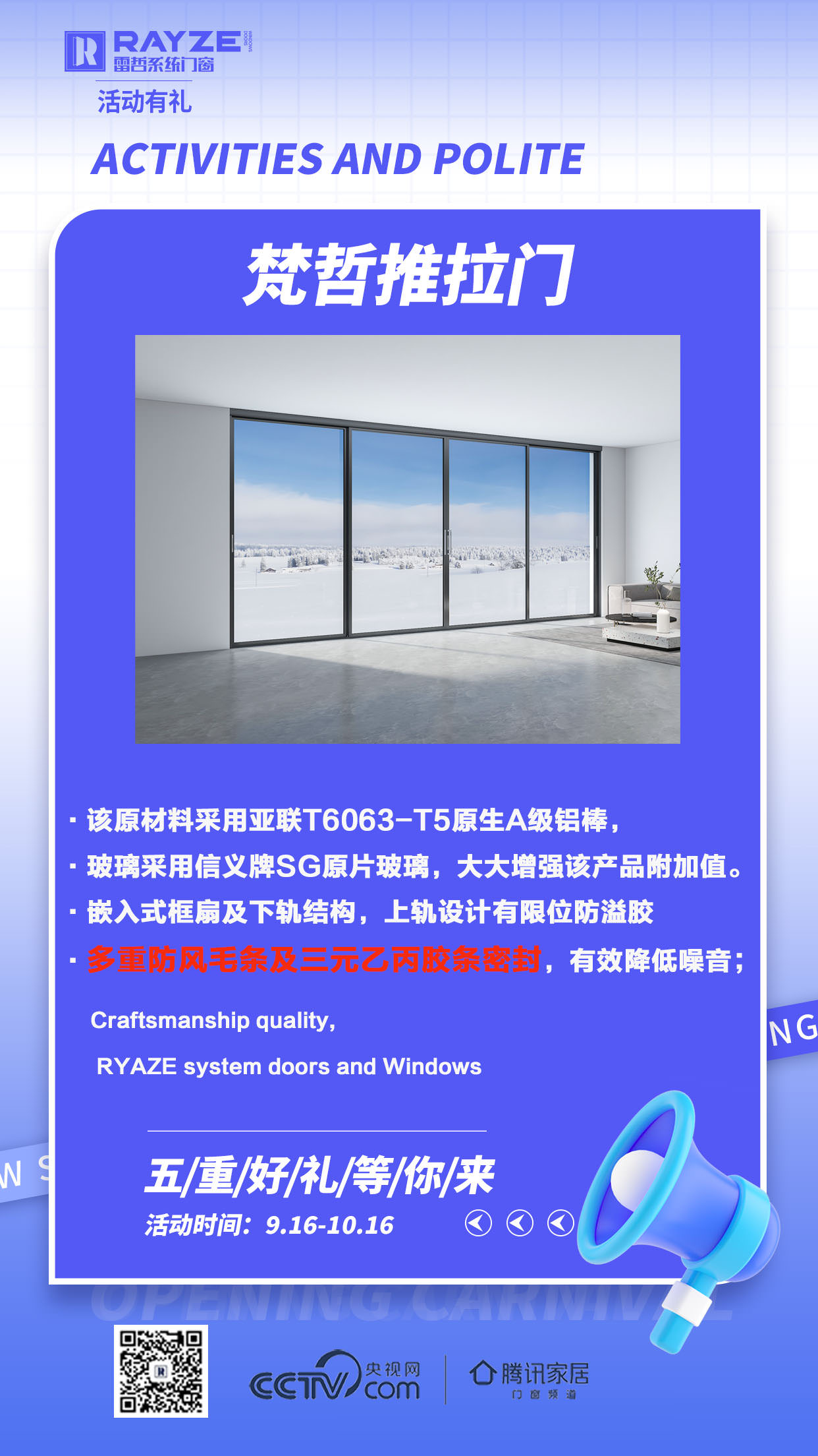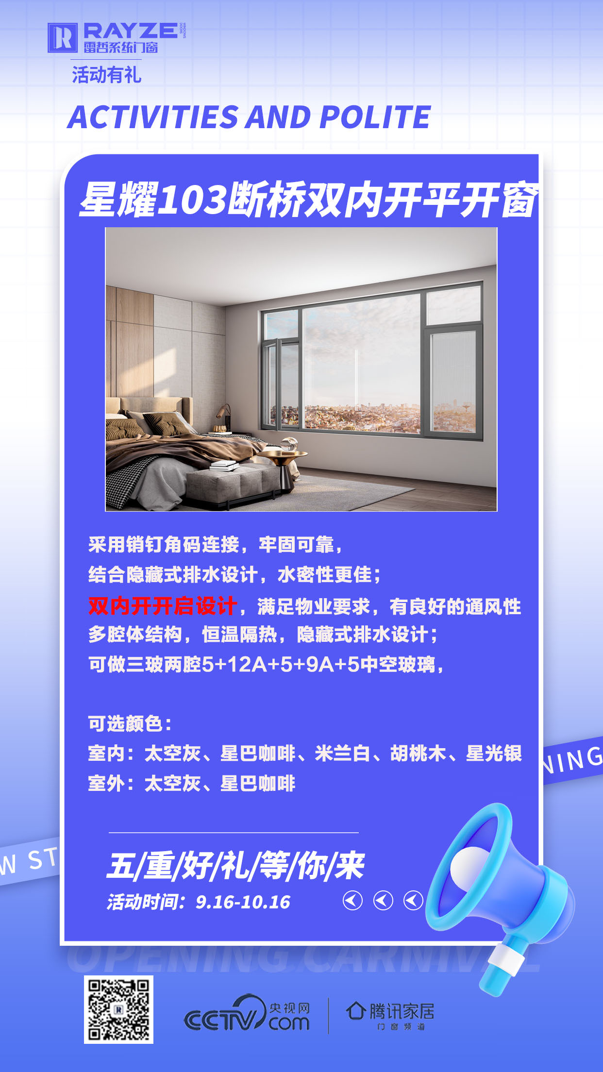 有國才有家,在這個舉國同慶的日子里,也是時候讓家里煥然一新了。雷哲系統門窗,自然、寧靜、安全、耐用,是理想的居家伴侶。相聚在采光、通風良好的家中,與家人來一場溫暖的家庭聚會,看漫天星光,一起談天說笑、細品流年。歡度國慶,雷哲系統門窗活動狂歡,空前鉅惠,一起來看看吧!