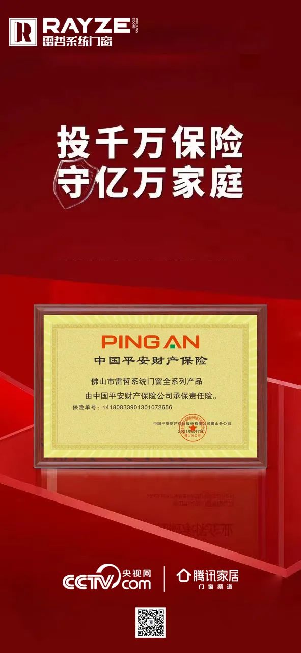 雷哲系統門窗全系列產品由中國平安財產保險公司承保,榮登中國鋁合金門窗行業十大品牌,榮譽是肯定,更是一種責任,精工智造,細致服務,抱誠守真,這是雷哲的態度!