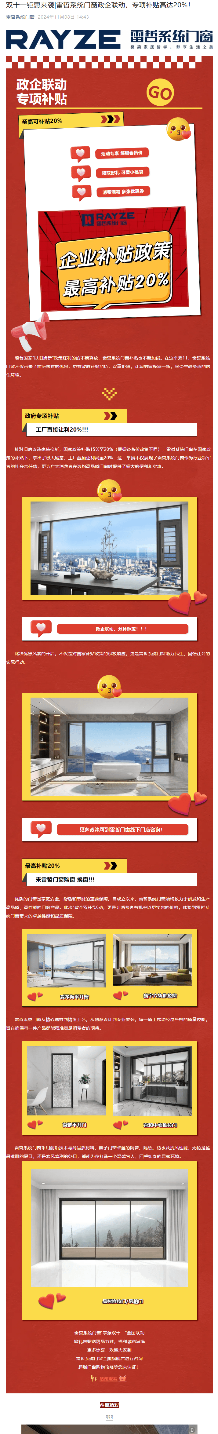 雙11門窗盛宴|雷哲系統門窗政企聯動,最高可補貼20%,年末狂歡等您來看!