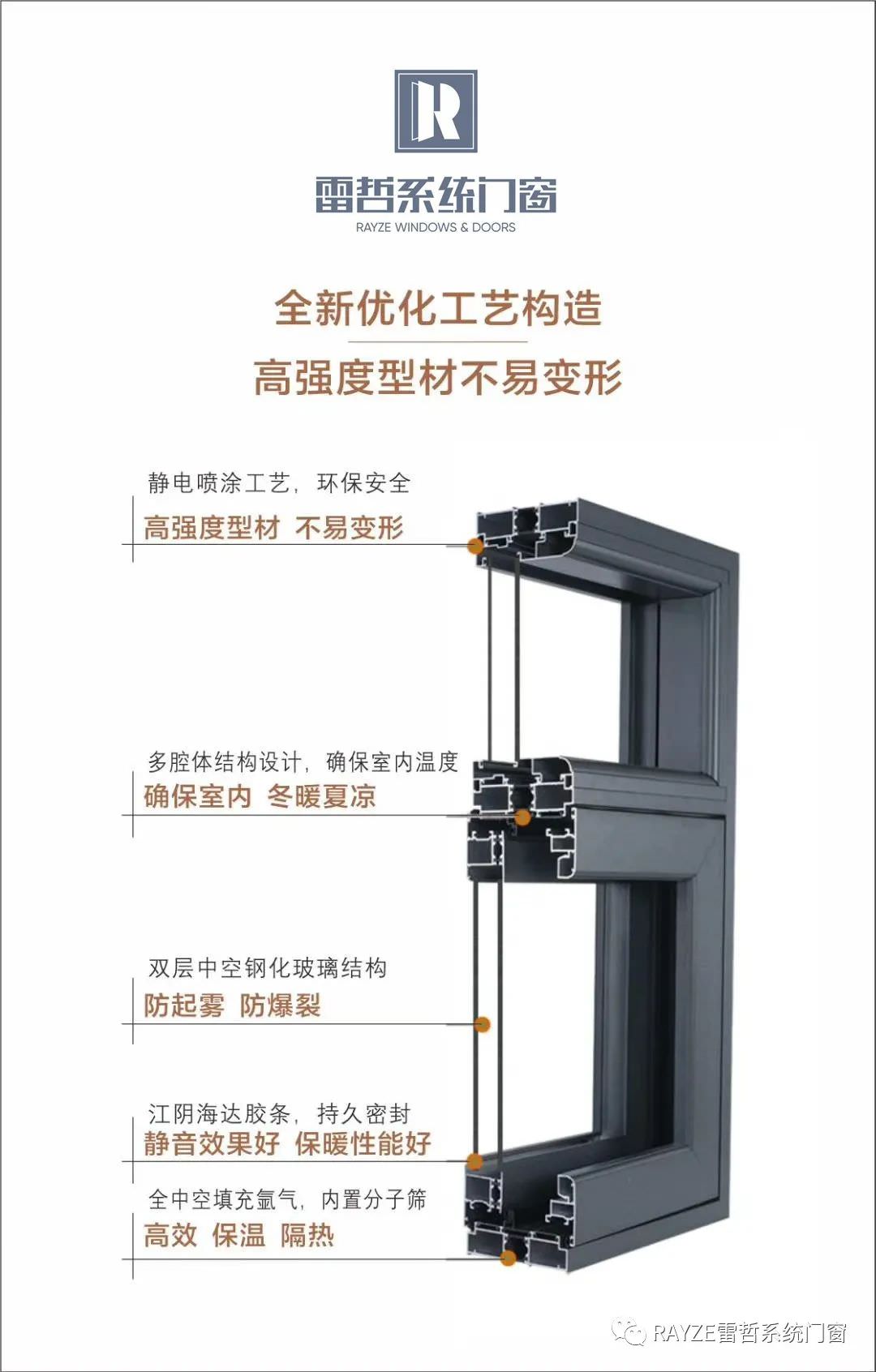 雷哲系統門窗,高端靜音門窗,不斷創新研發,不忘初心,專注做好每一扇門窗,從舒適度、安全性、設計感、品質保障等4大方面來把控和打磨產品細節,為消費者打造多元化的居家生活空間。