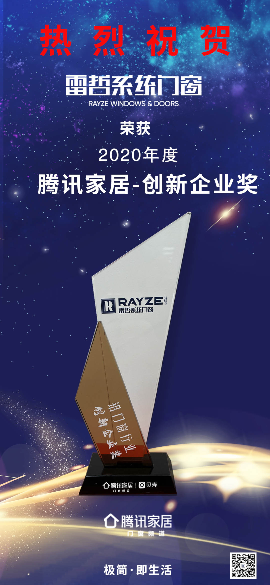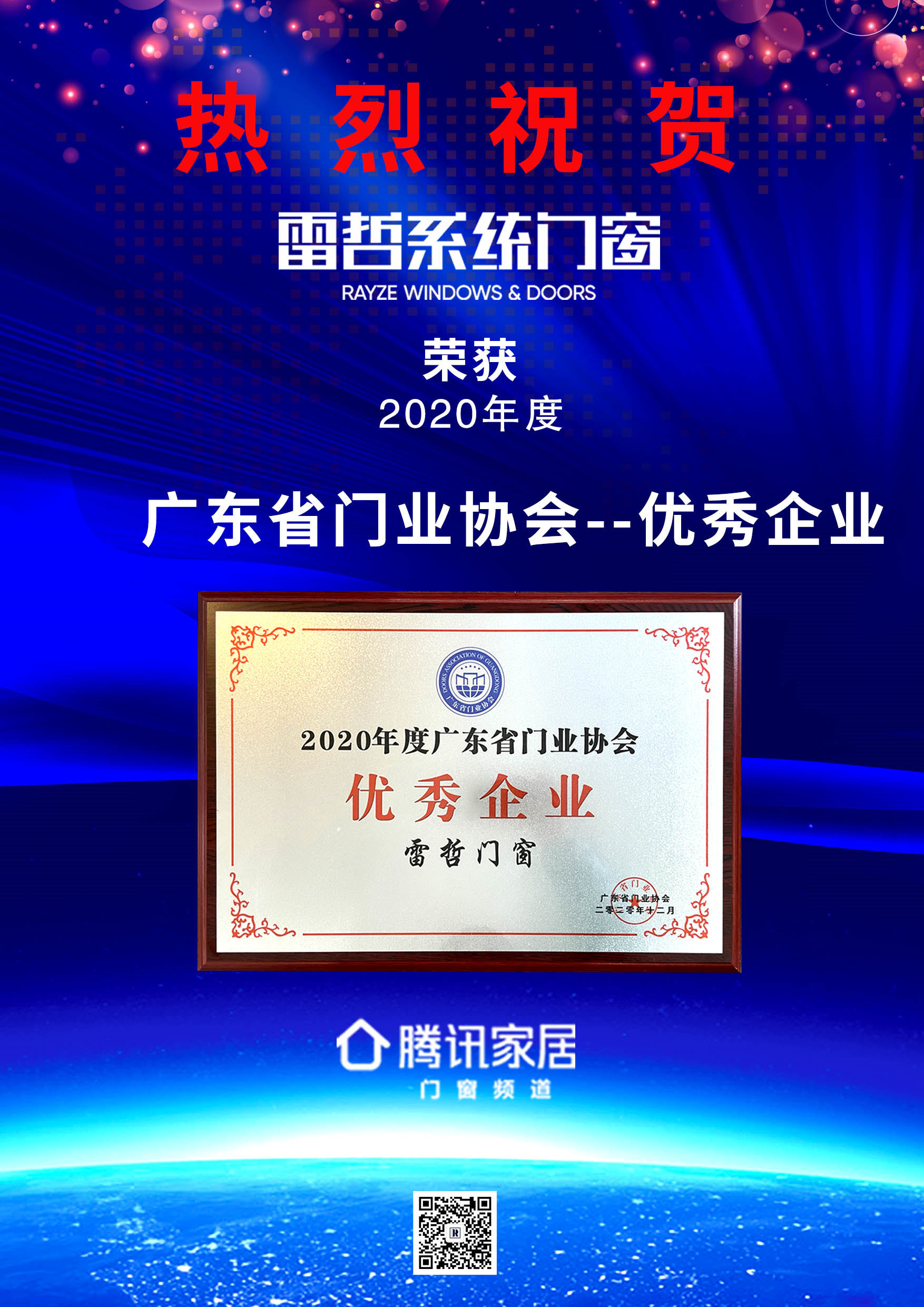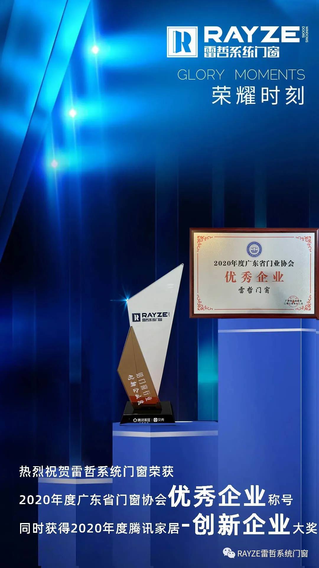 廣東省門業協會是廣東門窗行業的權威機構,對常務理事單位的評選和任命極其嚴格,對上萬個門窗品牌的產業規模,研發投入、產品工藝、服務水平、品牌口碑、行業貢獻力等多個指標進行綜合考核和審定。雷哲系統門窗憑借20年品牌積淀、過硬的產品力、持續的創新力,在頒獎典禮中雷哲榮獲“2020年廣東門業協會暨行業高峰論壇“優秀企業獎”;并憑借高顏值“極簡?輕奢風“產品元素榮獲“2020年中國騰訊家居品牌門窗--“創新企業獎”;一舉斬獲廣東門業協會及騰訊家居年度盛典二項大獎,成為了行業萬眾矚目的明星新品牌,再一次彰顯雷哲系統門窗強大的品牌實力!這是對雷哲系統門窗實力的肯定,同時也見證了雷哲系統門窗在行業公認的品牌影響力。